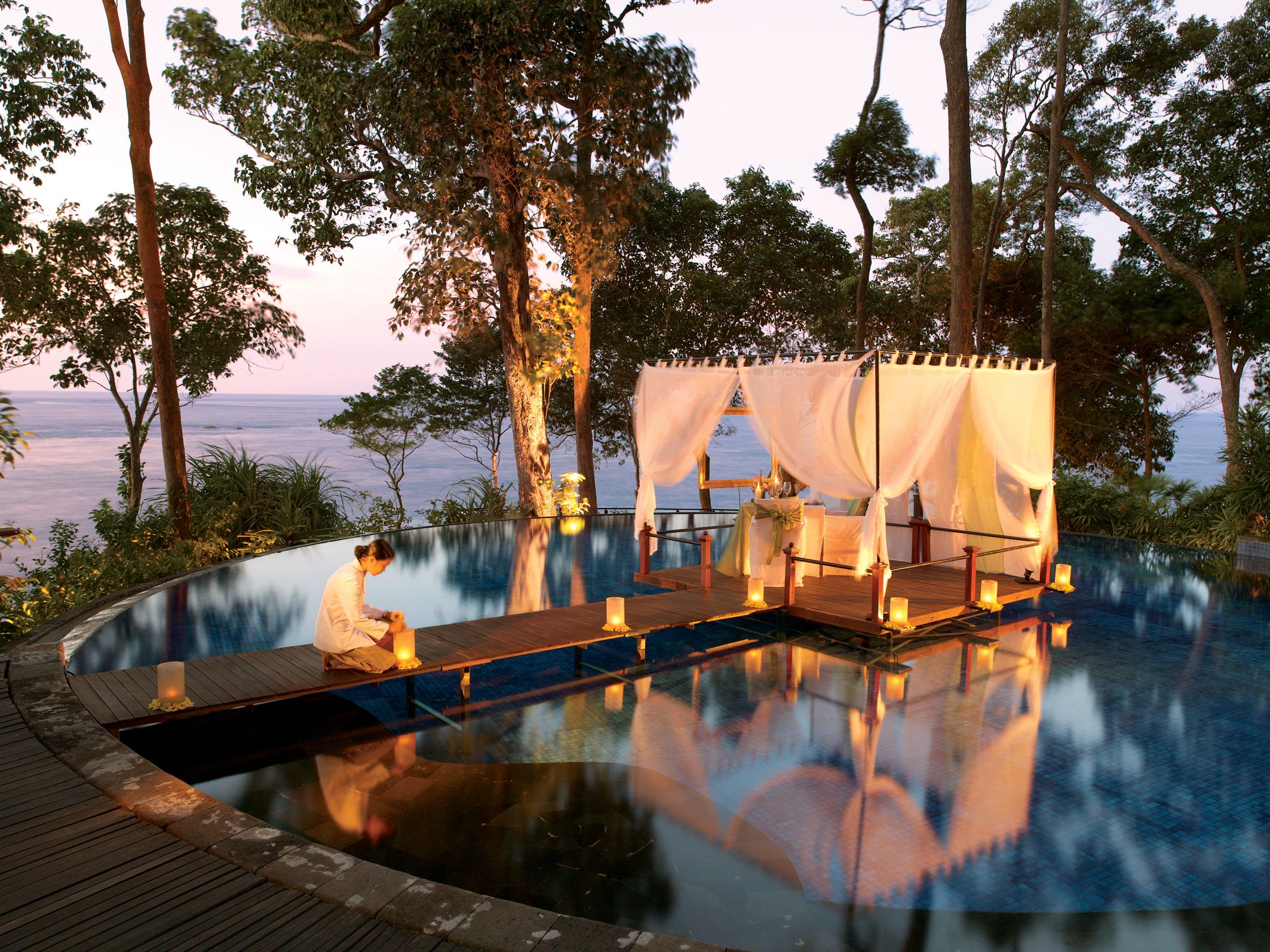 Khách sạn 5 sao nằm trên đảo thuộc vịnh Phang Nga, giữa hai thành phố Phuket và Krabi – nơi bạn chỉ có thể tới bằng thuyền. Tất cả 56 biệt thự của khách sạn đều được xây trong rừng.